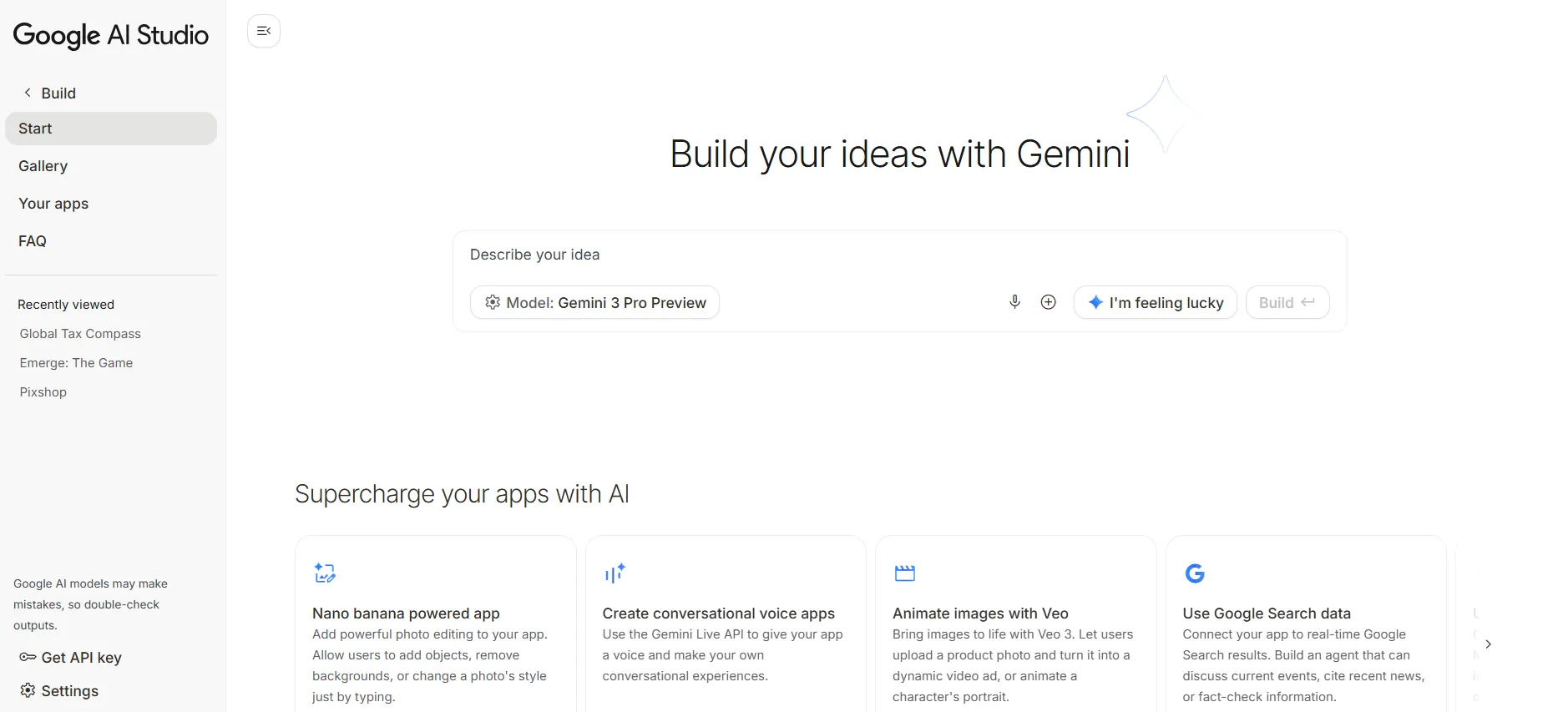 Don’t confuse AI Studio with Google’s Gemini chatbot interface. That one is for noobs and general users. AI Studio gives you access to Google’s complete suite of AI tools, from the sensational Nano Banana to Gemini 3.
