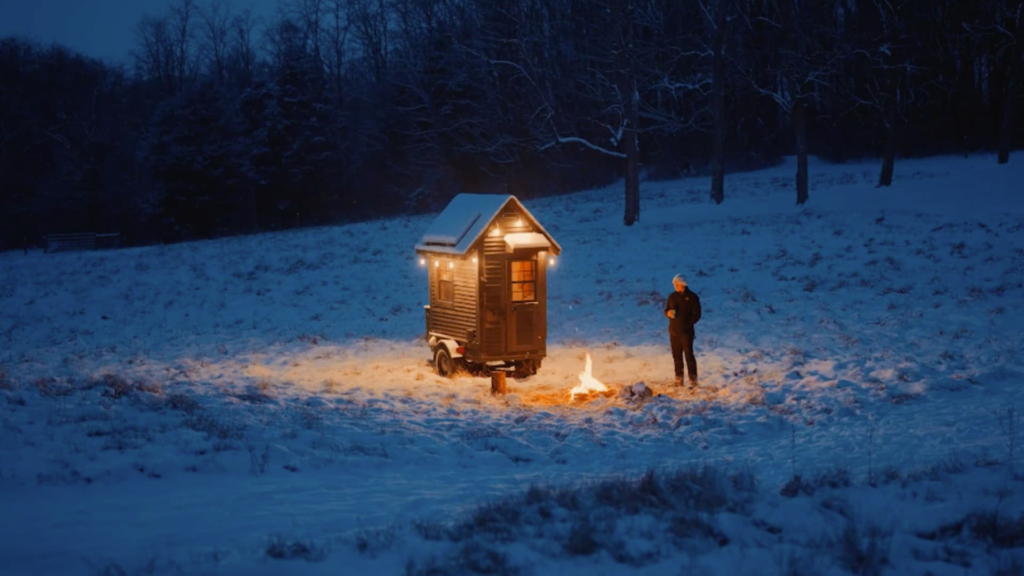 My wife, kids, and I live in our 2,500-square-feet home, but I’ve stayed in the tiny home a few times, including once during a massive snowstorm. I wanted to test the structure against nature, and it held up better than expected. I had heat, electricity, and a fire outside.