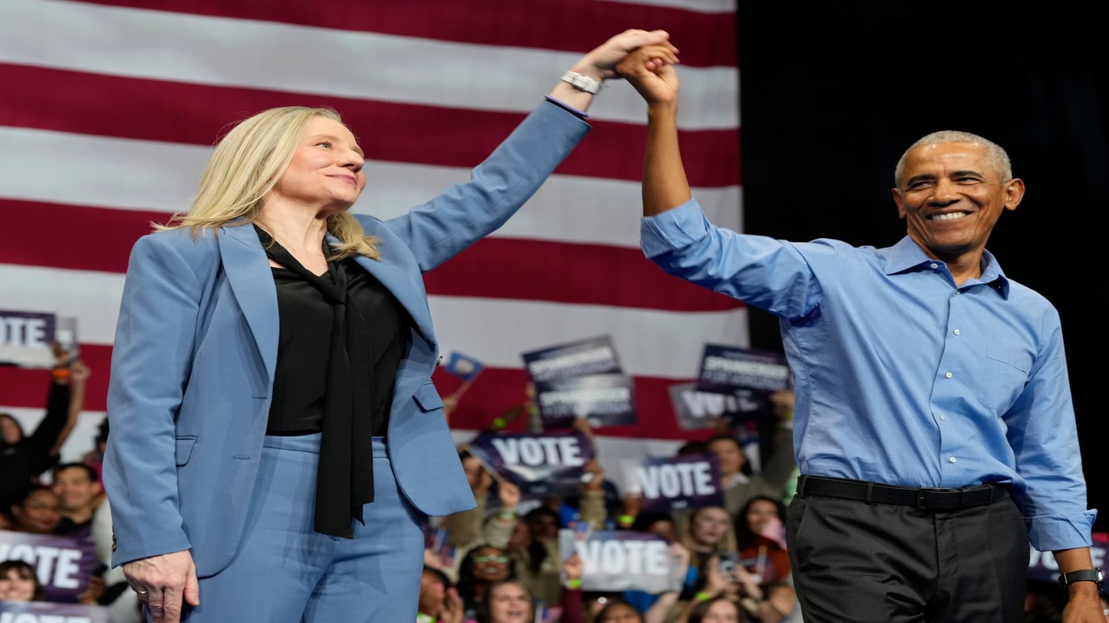 Obama’s appearances Saturday for Abigail Spanberger and Mikie Sherrill contrast with Trump spending the weekend at his Mar-a-Lago estate in Florida, leaving Republicans Winsome Earle-Sears in Virginia and Jack Ciattarelli in New Jersey to campaign for themselves.