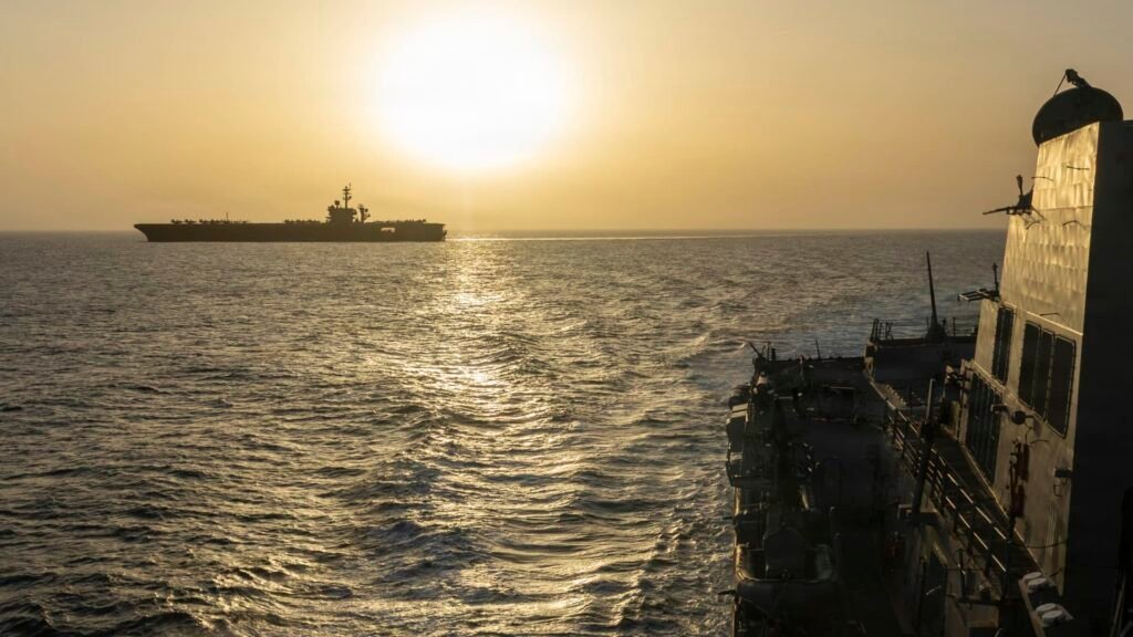 USS Abraham Lincoln conducts U.S. blockade operations related to the Strait of Hormuz on April 16, 2026.