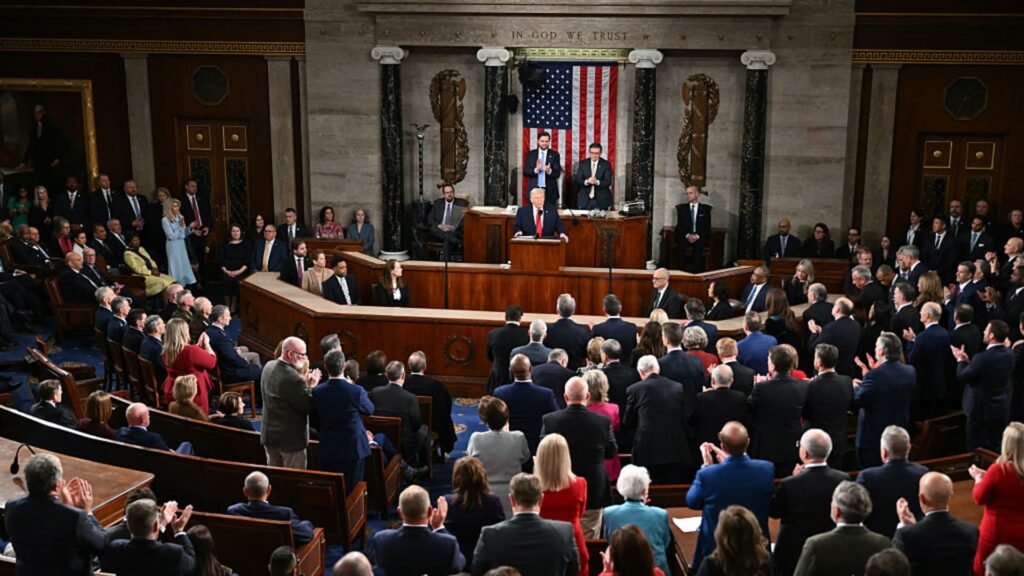 U.S. President Donald Trump delivers his State of the Union address during a Joint Session of Congress at the U.S. Capitol on Feb. 24, 2026, in Washington, DC.