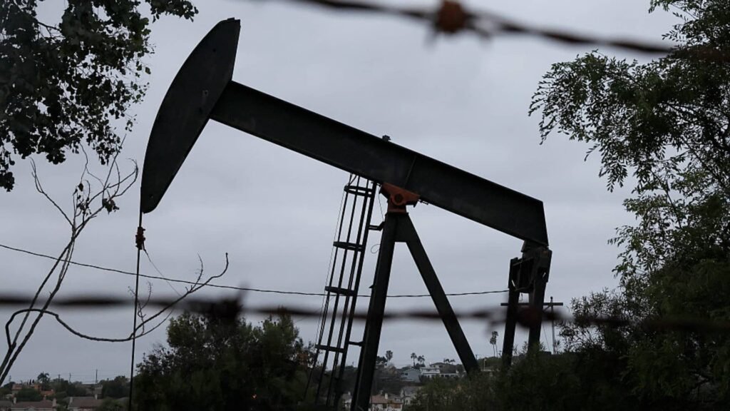 An oil pumpjack operates in the Inglewood Oil Field on March 10, 2026 near Los Angeles, California.