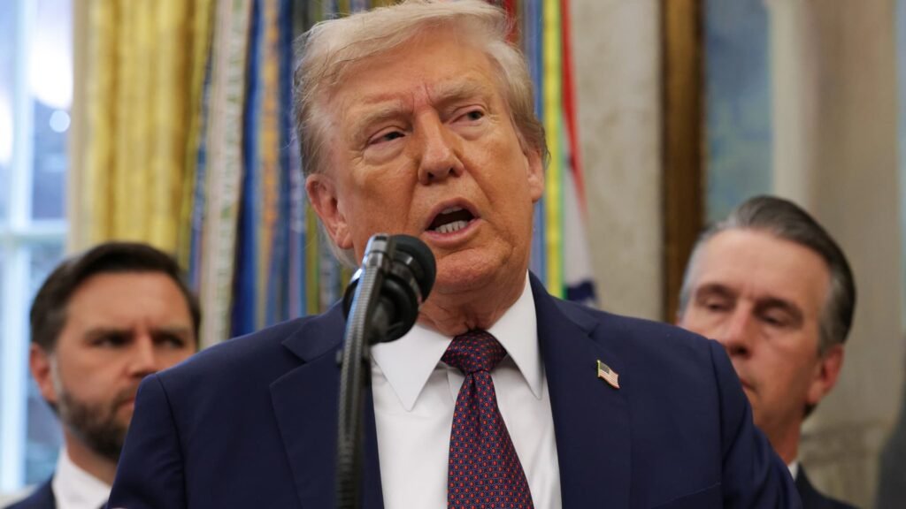 U.S. President Donald Trump speaks to the media in the Oval Office at the White House on September 2, 2025 in Washington, DC.