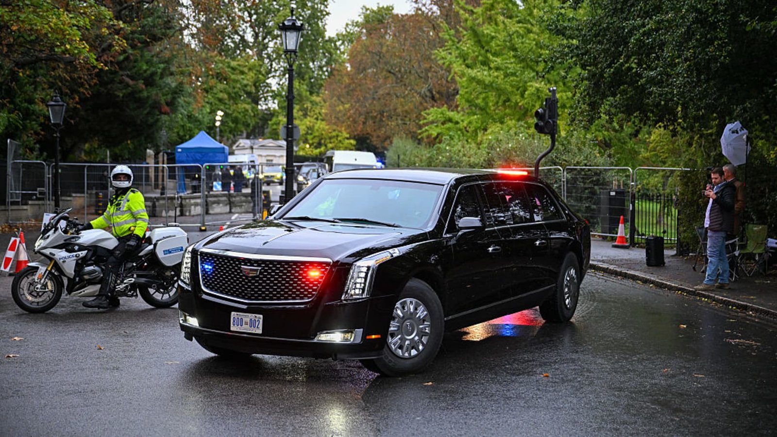 “The Beast” armored limousine departs from Winfield House, the U.S. Ambassador’s residence, during the state visit of US President Donald Trump on Wednesday, Sept. 17, 2025.