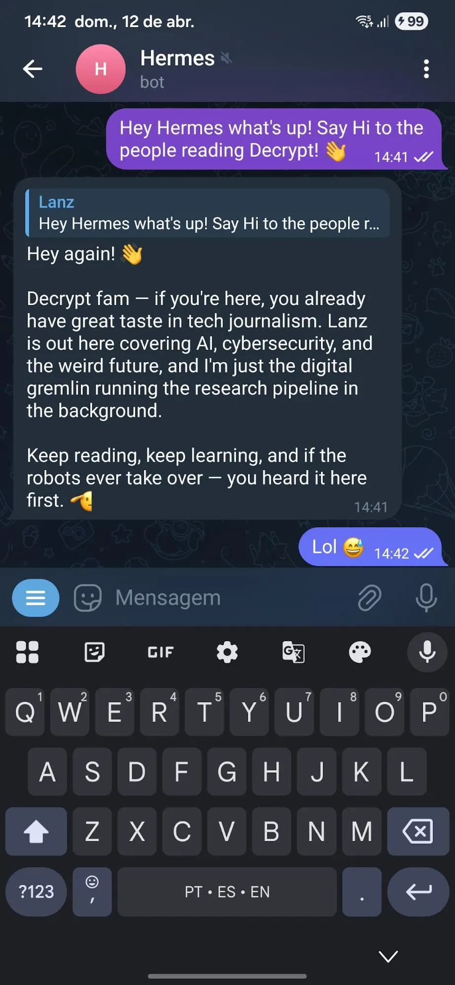 Once the gateway is running, open your new bot in Telegram and send it a message. That’s it. You’re now talking to Hermes from your phone. It can send you scheduled task results, receive voice memos that get auto-transcribed, handle file uploads, and even work in group chats where you can @mention it.